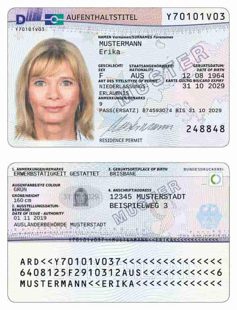 - Proof of German Resident Permit: Applicants and two witnesses must provide a copy of their Aufenthaltstitel/Personalausweis [Sample] (both side – showing the name and address of the holders).