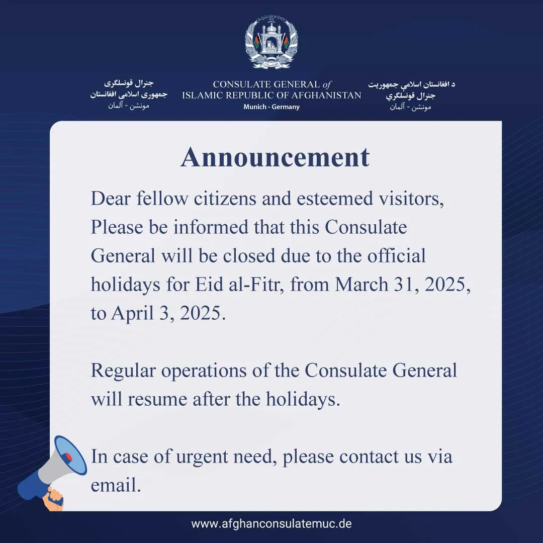 هغه افغان جوړې چې مخکې واده کړي وي او په جرمني کې مېشت وي، په ځانګړي ډول د بایرن او بادن-وورتمبرګ ایالتونو اوسېدونکي، کولای شي په دې قونسلګرۍ کې د واده د تصدیق لپاره غوښتنه وکړي.